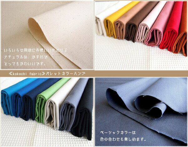カラーハンプ生地≪kokochi fabric≫パレットカラーハンプ色鮮やかなパレットのようなカラーが全部で15色。カラフルでおしゃれな帆布は、バッグやインテリアファブリックなどにおすすめ♪11号はんぷ(11号帆布)